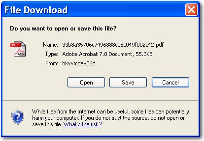 The File Download window displays, allowing you to open and print the file now or save it and print it later.