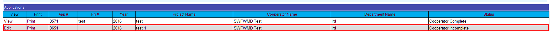 Applications in this Status have been saved but not submitted to the District and can be edited at any time before the submission deadline of the first Friday in December at 2:00 p.m. Applications are assigned this status when Save Application for later is selected on the Save & Submit Tab.